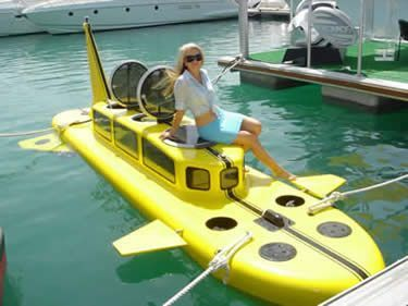 The submarine slowly descends into the ocean, revealing breathtaking underwater views.