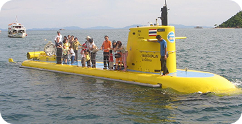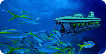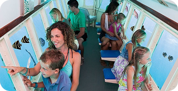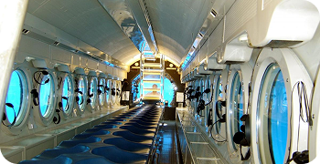 Step inside our climate-controlled submarine and take your seat beside a panoramic viewing window.